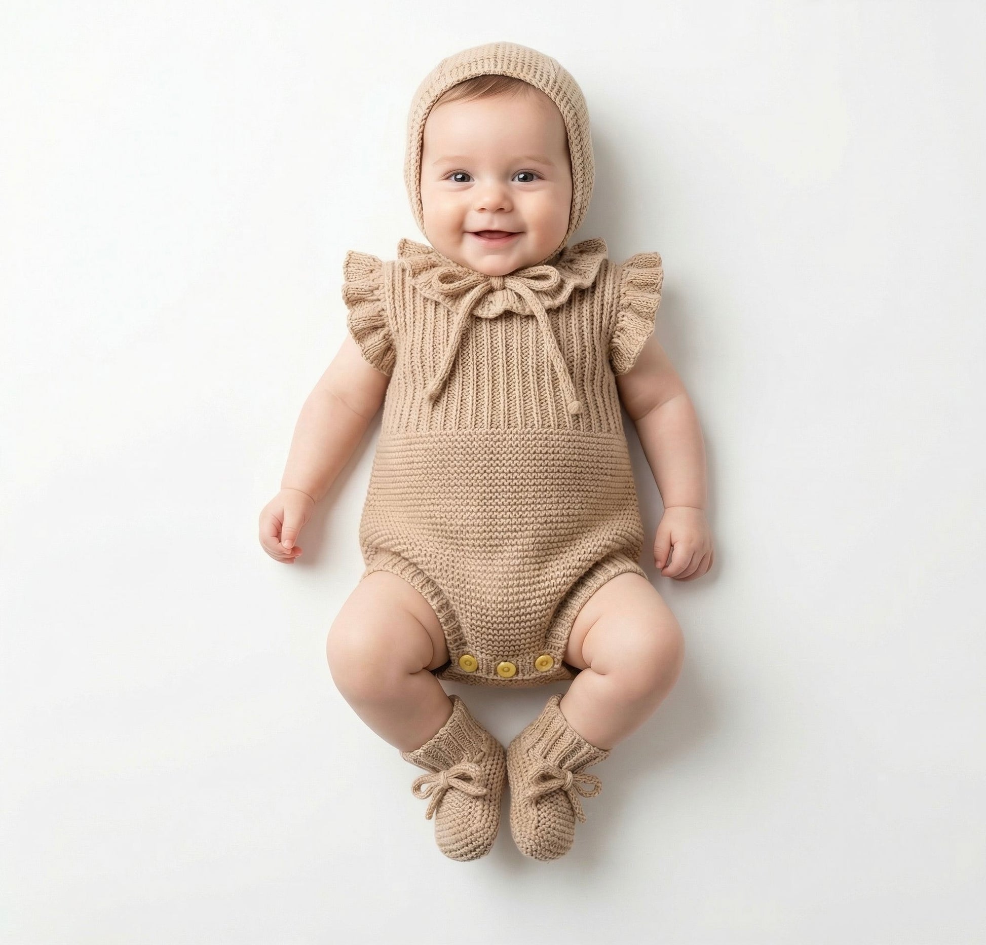 Conjunto compuesto por capota, patucos y pelele