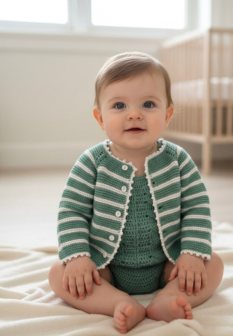 Conjunto de chaqueta verde de rayas de manga larga con pelele