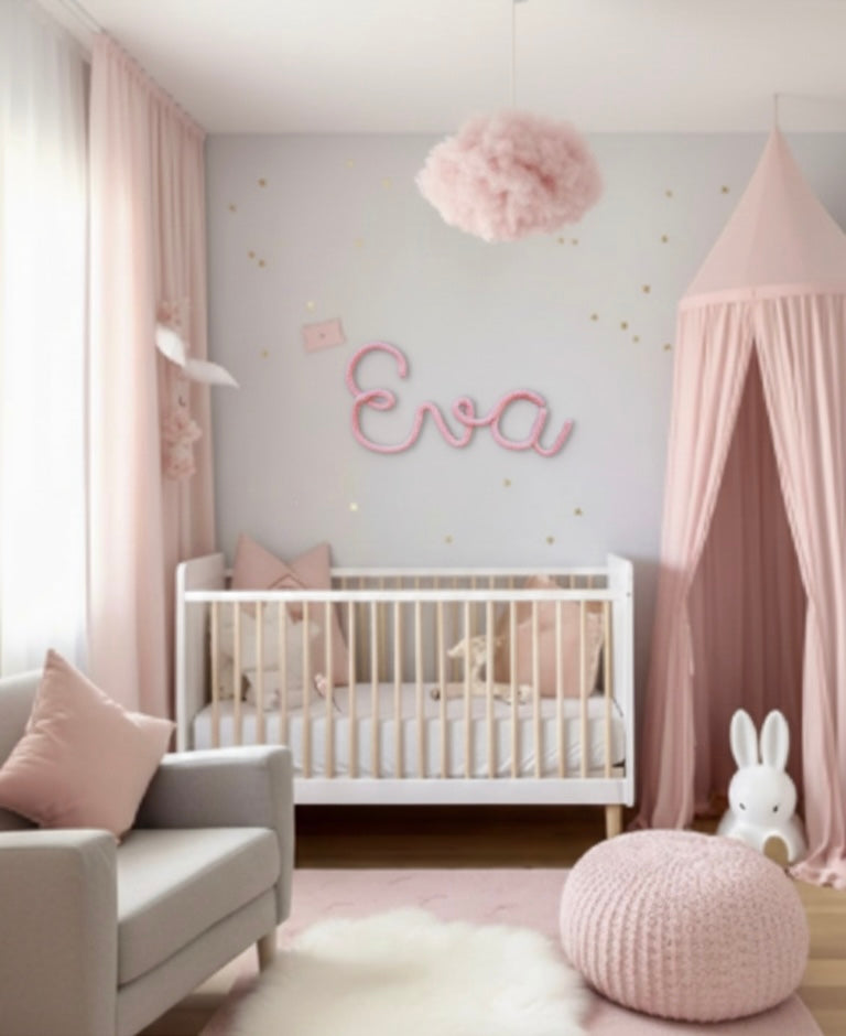 Nombres realizados en cordón de algodón en cualquier tono utilizados para decorar cualquier espacio del dormitorio infantil.